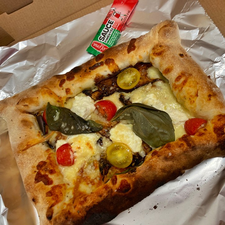 Aldona made a point to tell me they used and prepped only fresh vegetables (except the artichoke hearts). I had a Mona Lisa that first night, which has a stuffed crust, but not like this 🤢. I watched as André lined the edges of my Mona Lisa with shredded mozzarella, fresh eggplant and basil, and then rolled them up. It was just the right size for one person, and the thin crust was a perfect balance of crispy and airy and bready. It had flavor (like French bread). The toppings were ample and tasty. Sorry, I am not, nor would I ever want to be a food blogger, so I don’t have all the words. It was really good.