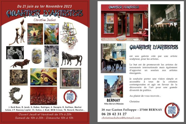 The works below (and others not in the slideshow) are all available at the Quartier d’Artistes gallery in Bernay (address in image below), which is run by Christine Dubos.